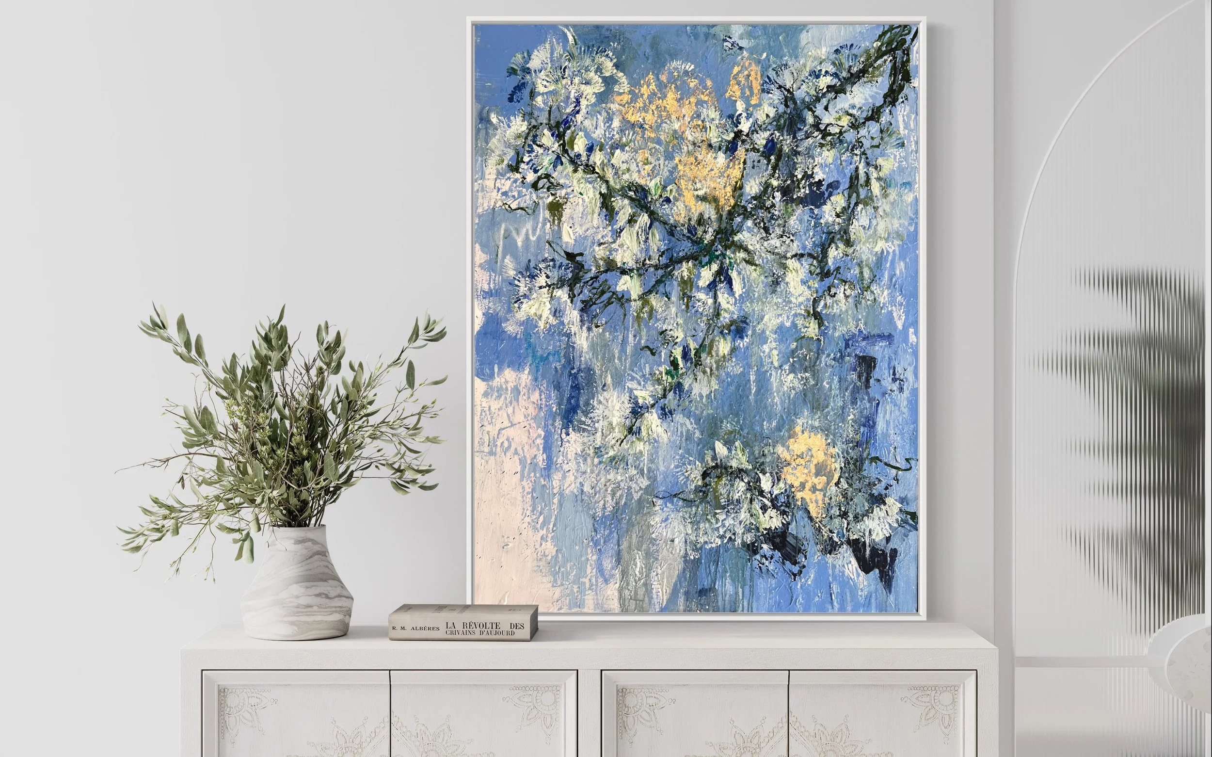 < Back to Gallery Monet’s Dream125 x 94cmAcrylic, gold foil and oil pastels on canvas$4,300 (framed)- Sold -