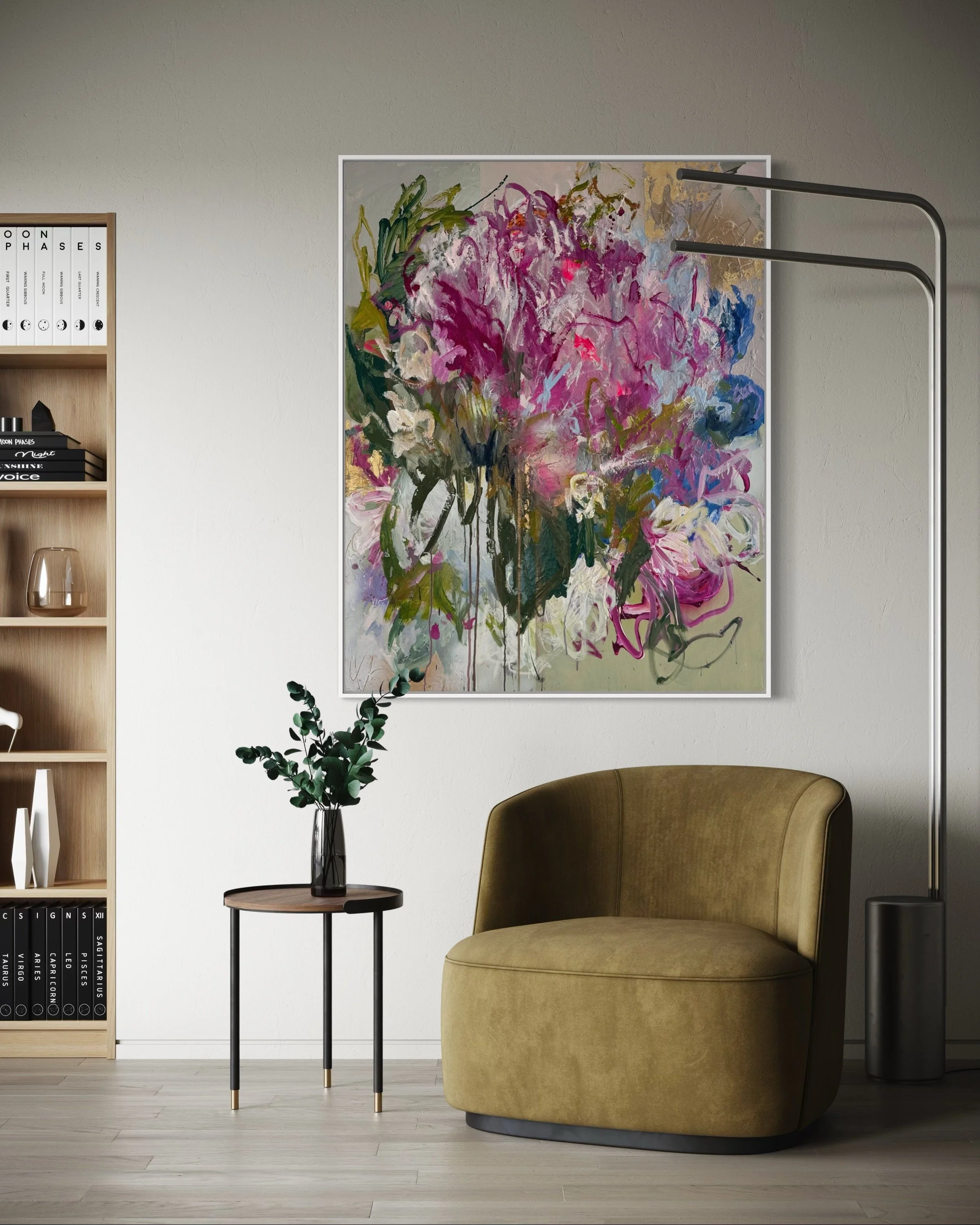 < Back to Gallery Into The Light104 x 125cmAcrylic, gold foil and oil pastel on canvas$4300 (framed)- SOLD -